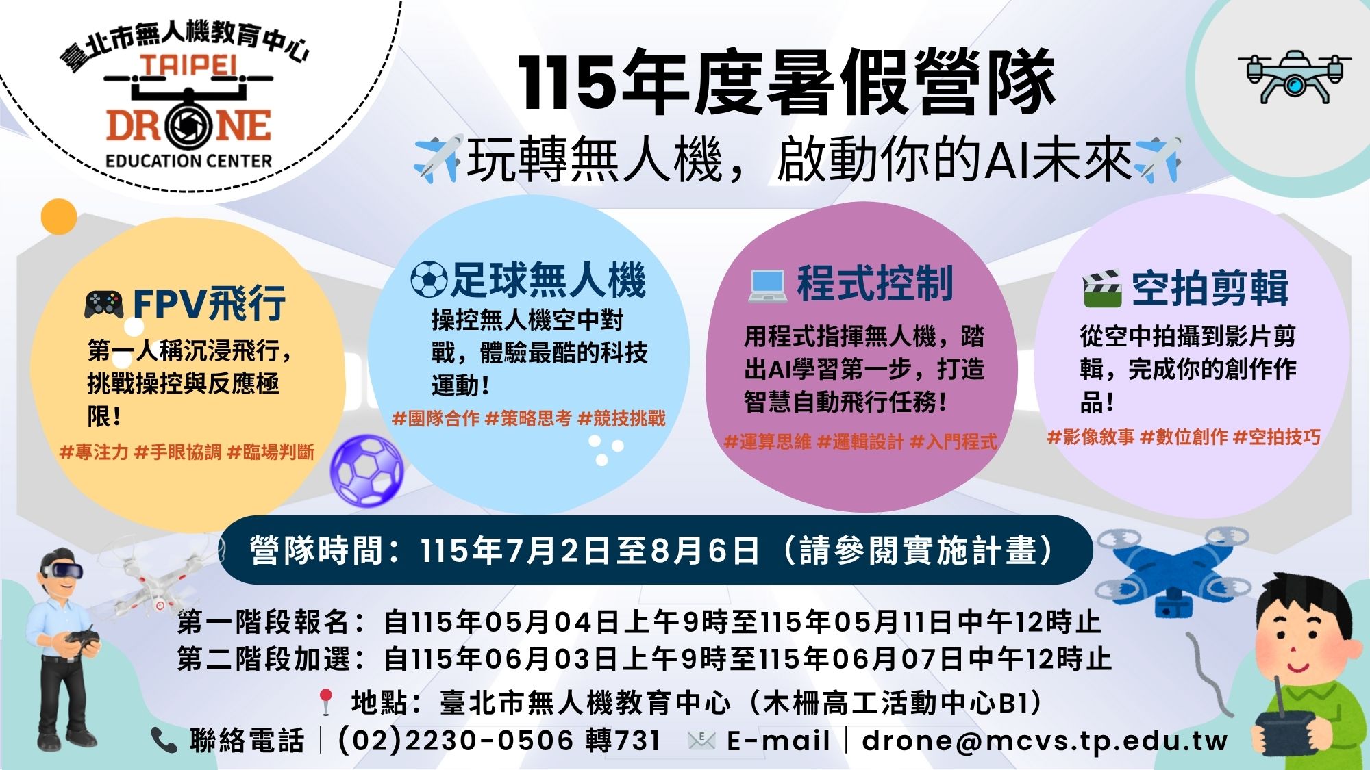 (一)營隊時間及地點:115年7月2日(星期四)至8月6日(星