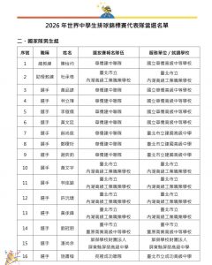 校園公告 公告主旨 賀!本校排球隊施書楷入選2026世界中學生排球錦標賽中華隊正選名單 發佈日期 2026 年 4 月 28 日 發佈單位 體育組 公告類別 行政公告 公告等級 重要 點閱次數 34 公告內容 書楷 憑藉著努力不懈的精神,在眾多好手中入選中華隊正選名單, 6/30-7/10赴中國參加比賽,我們一起為書楷加油💪 謝謝排球隊教練陳美靜老師的指導。 相關附件 洽詢資訊 洽詢單位:體育組洽詢電話:23216256#276電子信箱:hbl318@hotmail.com 【2026-04-28】臺北市立成功高級中學115學年度第2次正式教師簡章 【2026-04-28】海委會舉辦「復振航海文化力–海洋文化影片放映會暨海洋文化交流 ...