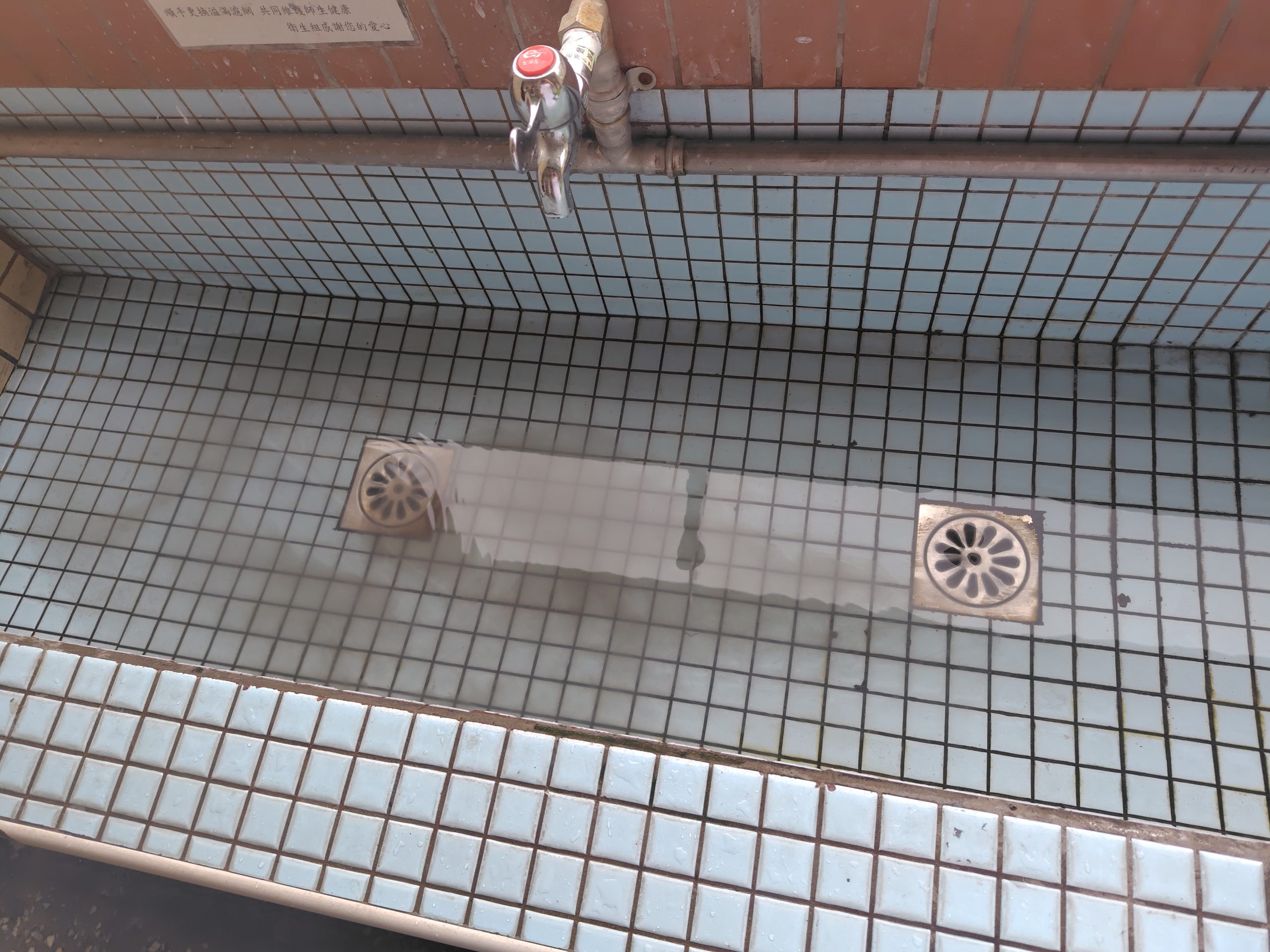 左邊幾乎堵住,右邊輕微堵塞 上傳照片 外掃區洗手台堵住